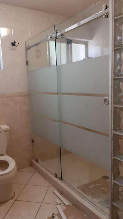 1. Puertas para baño aluminio y vidrio dúplex claro.